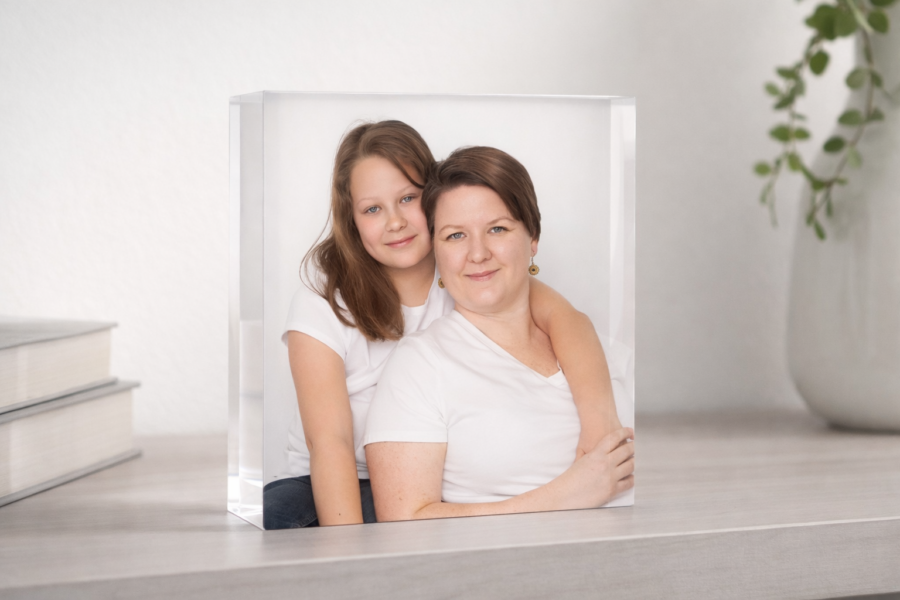 The acrylic block is the perfect desktop reminder of this moment.